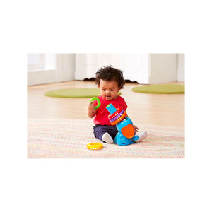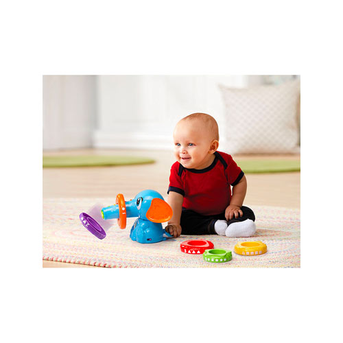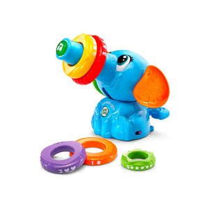 التراص هو الكثير من المرح مع لعبة فيل التكديس والتشقلب. كدس الحلقات الخمس ذات الألوان الزاهية والمنسوجة على جذع الفيل.